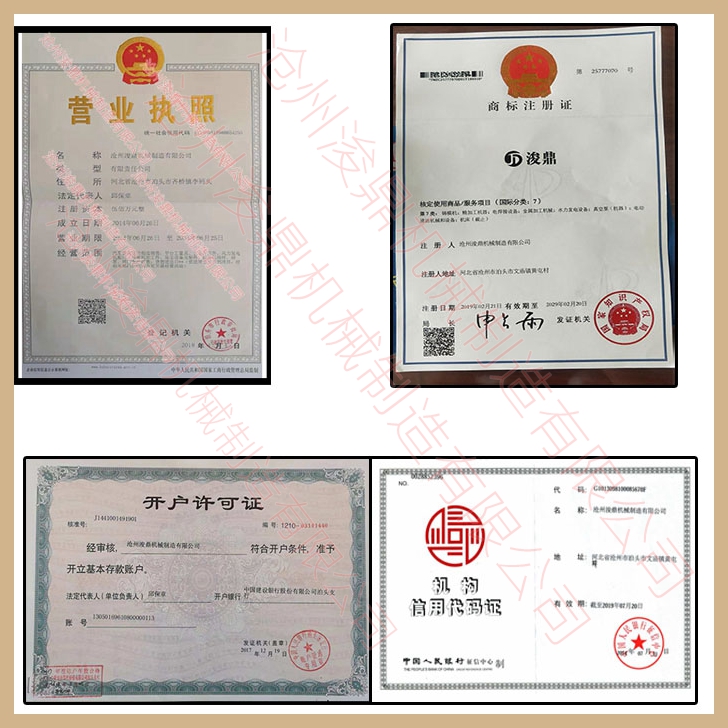 滄州浚鼎機械制造有限公司資質,公司秉承質量為根,客戶為本的原則真誠的為您服務